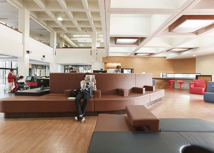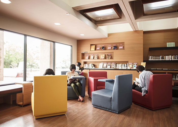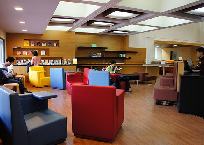 进入校园客厅装修也旨在将图书馆。它提供了多种舒适的地方挂出。图书馆的大厅被设计成一个书店的丰富多彩和移动的扶手椅。新到货书显示,以及畅销书。图书馆建筑中引入一个咖啡厅提供免费接入校园的行人天桥。